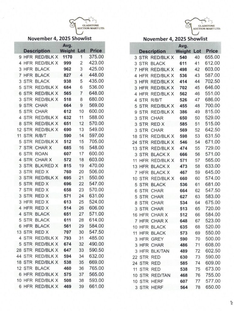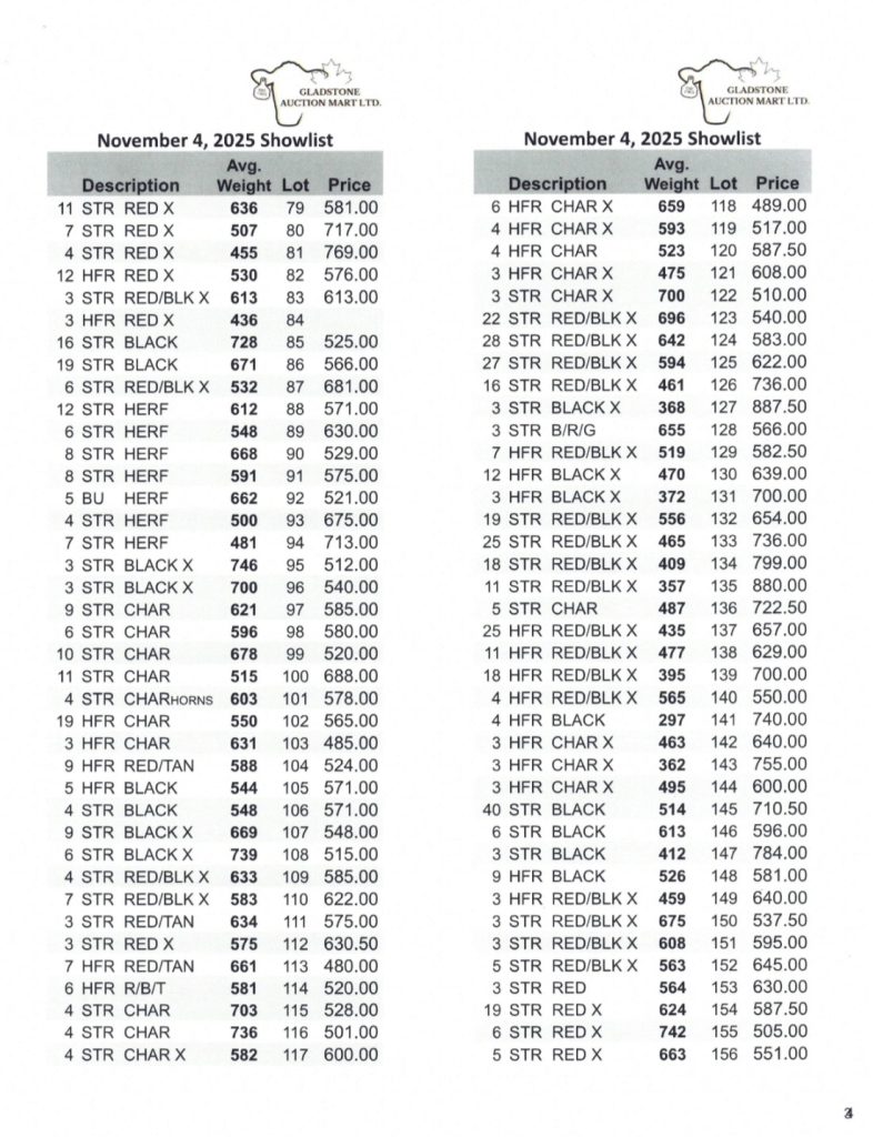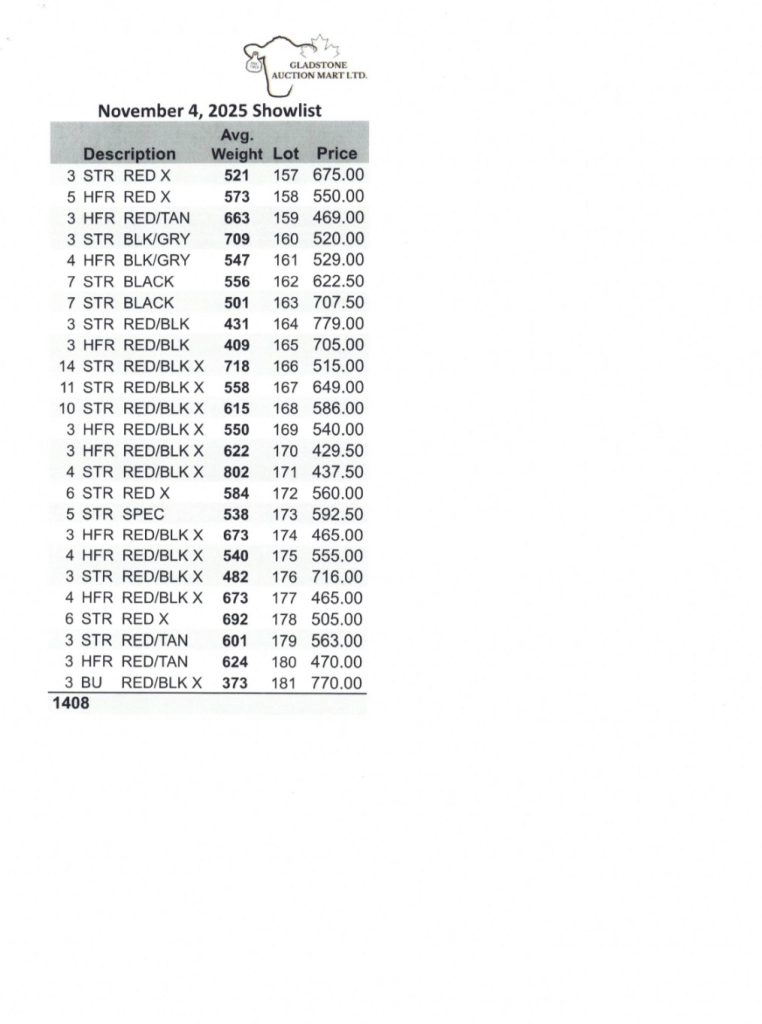 This has been Blaine Huston Reporting for the Gladstone Auction mart for the week of November 4th and thank you for being a part of our industry!