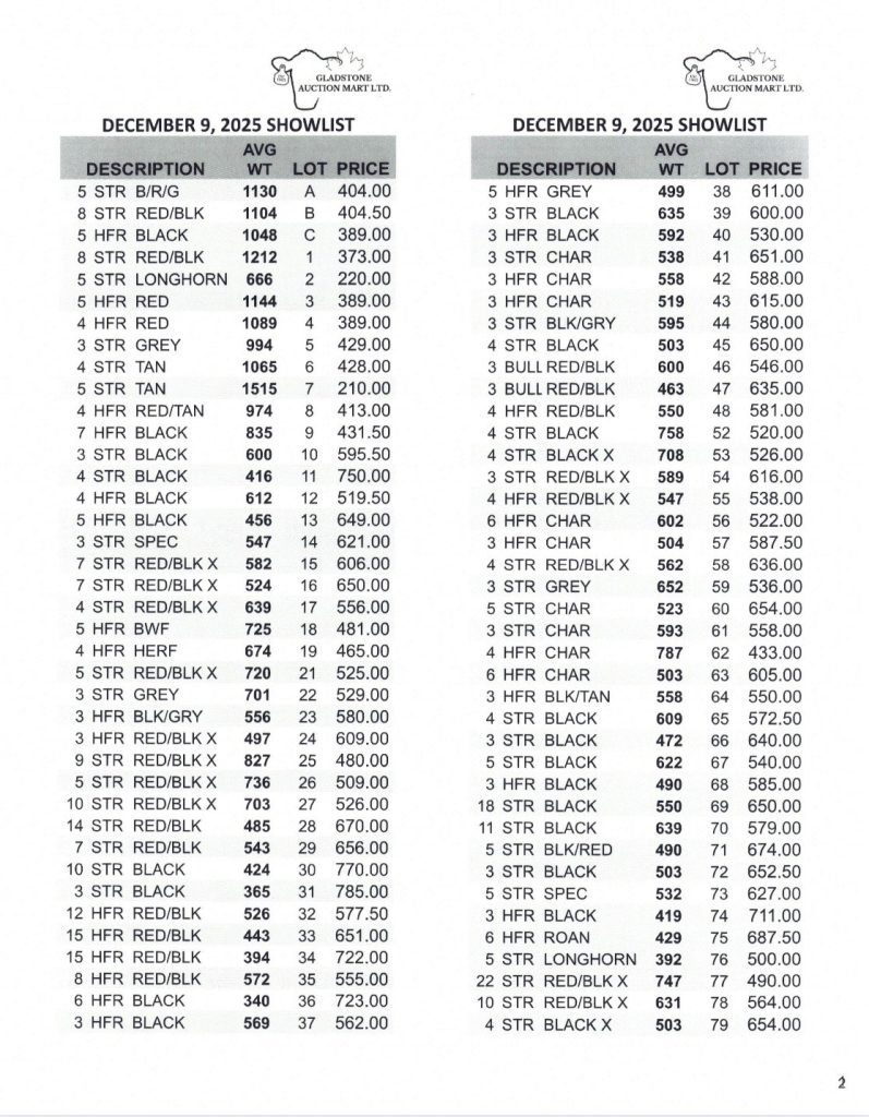 This has been Blaine Huston Reporting for the Gladstone Auction mart for the week of December 9th and thank you for being a part of our industry!